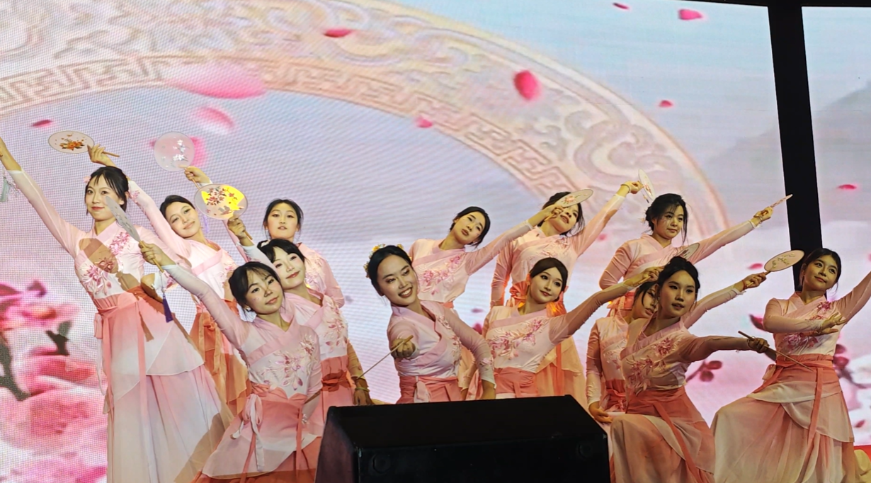 舞者们以持扇起舞的优美姿态