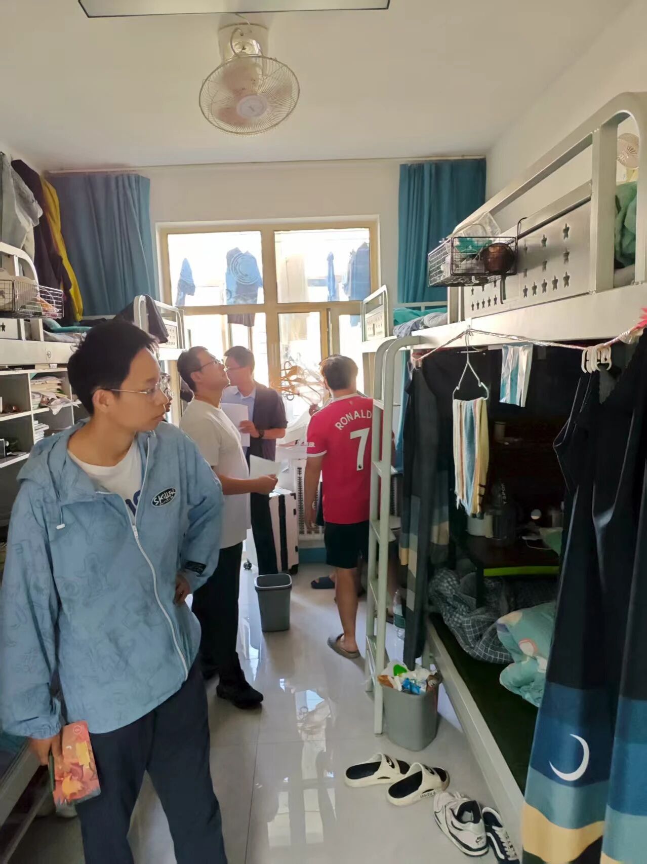 排查现场,老师们不仅细致检查安全隐患,还亲切与同学们交流。询问大家开学后生活是否适应、宿舍设施有无使用问题,叮嘱注意用电安全与作息规律,耐心倾听学业困惑与生活需求,用关怀话语拉近与员工距离,让安全排查既严又暖,切实筑牢校园安全与员工关怀双重防线。