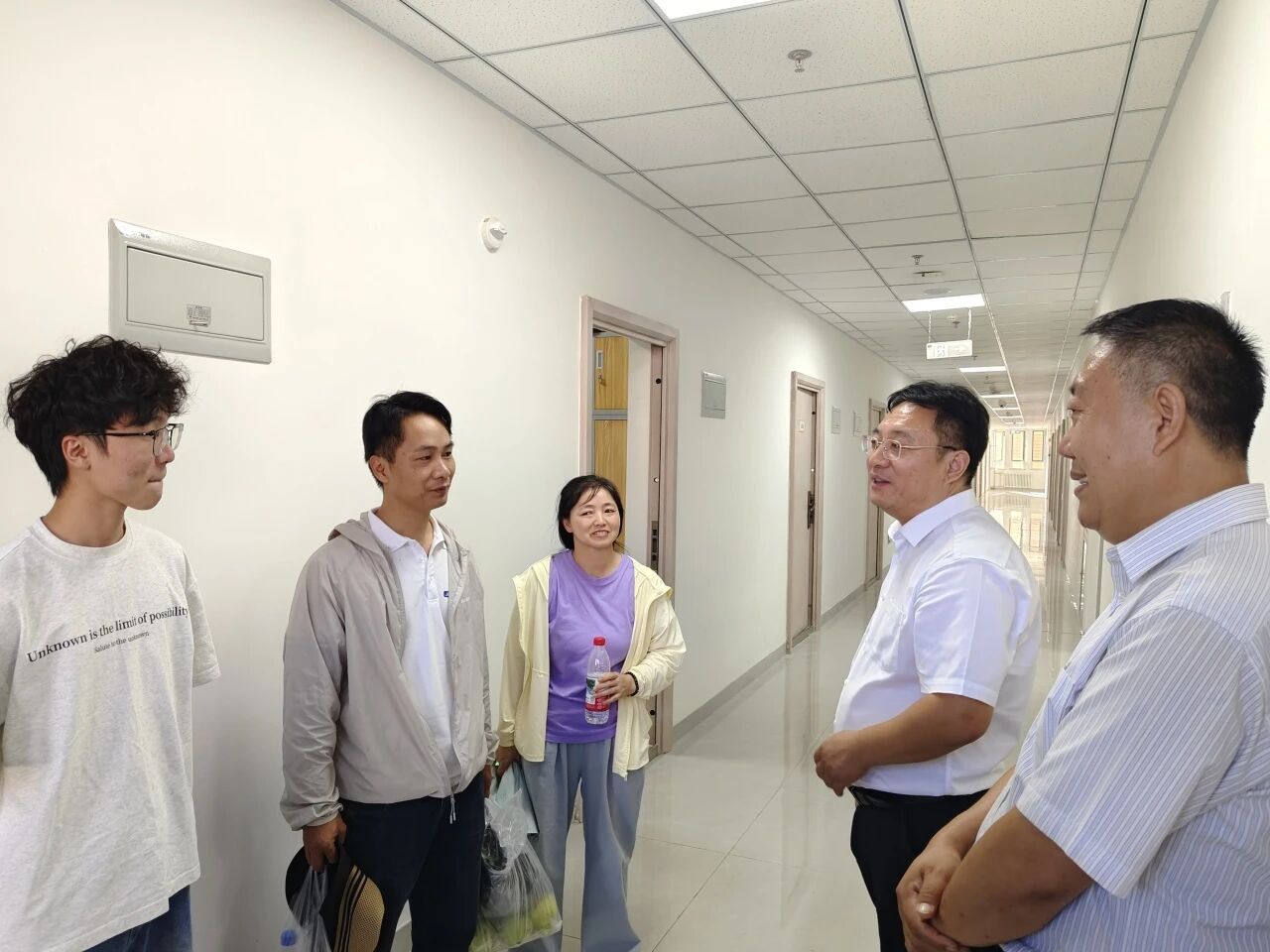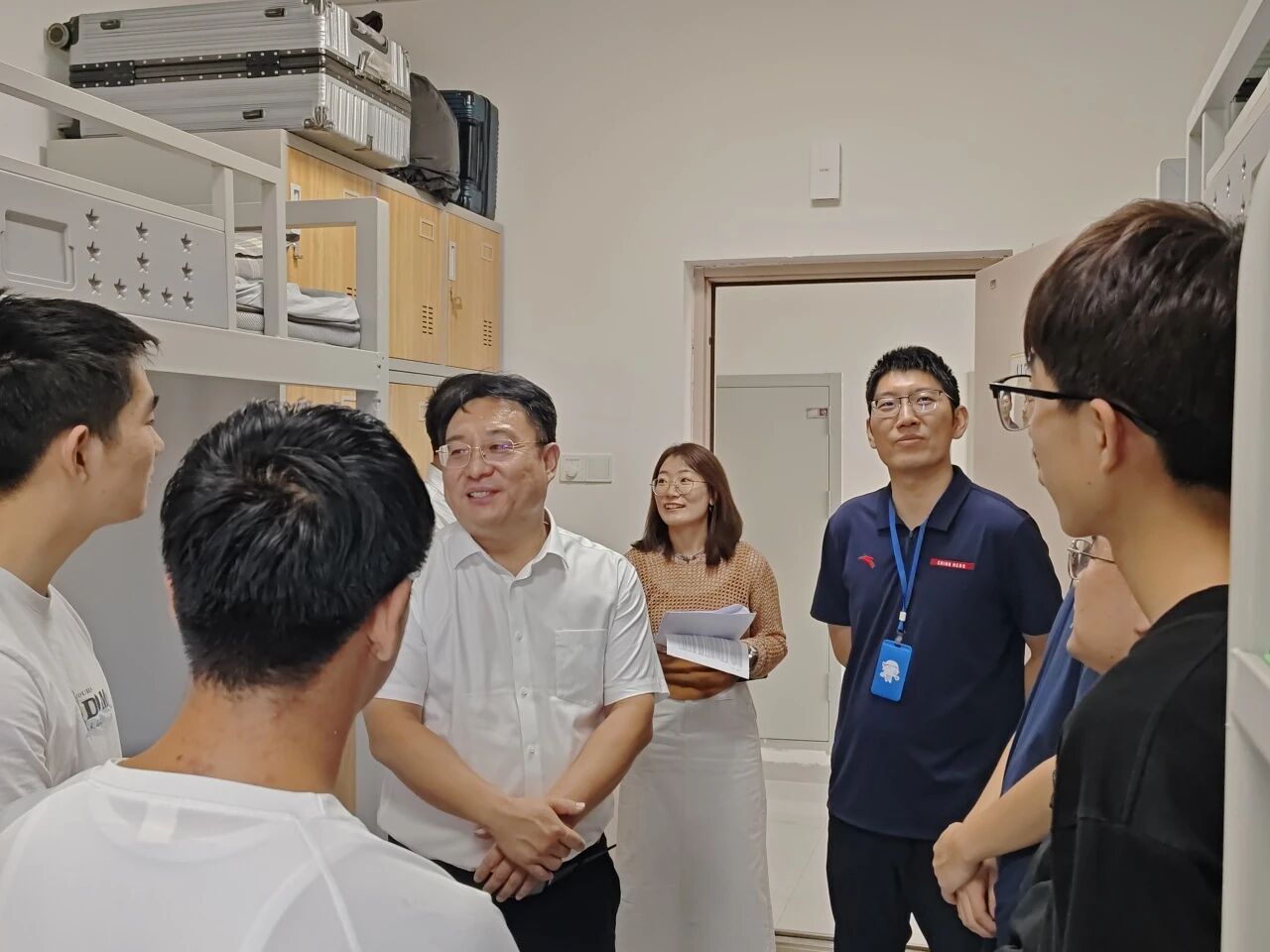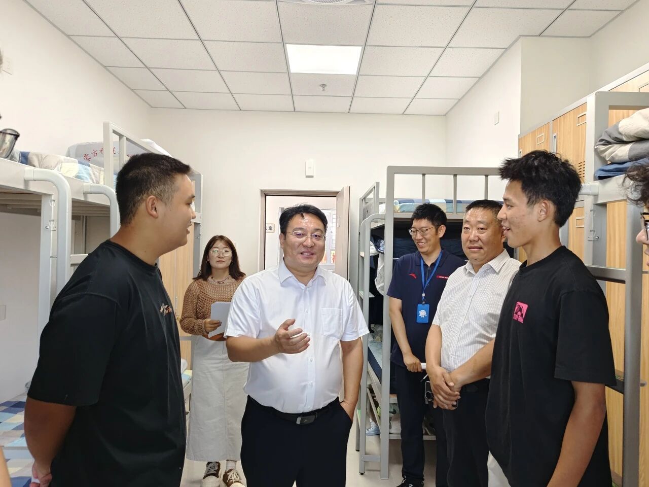 "宿舍环境还适应吗?""生活用品都备齐了吗?""有什么困难需要帮助?"……每到一间宿舍,公司领导都与新生亲切交谈,详细询问他们的入学感受、生活需求及未来规划。在走访过程中,领导们仔细查看宿舍设施配备情况,叮嘱同学们注意用电安全、保持宿舍整洁,并鼓励大家尽快融入集体生活,建立良好室友关系,营造温馨和谐的宿舍氛围。