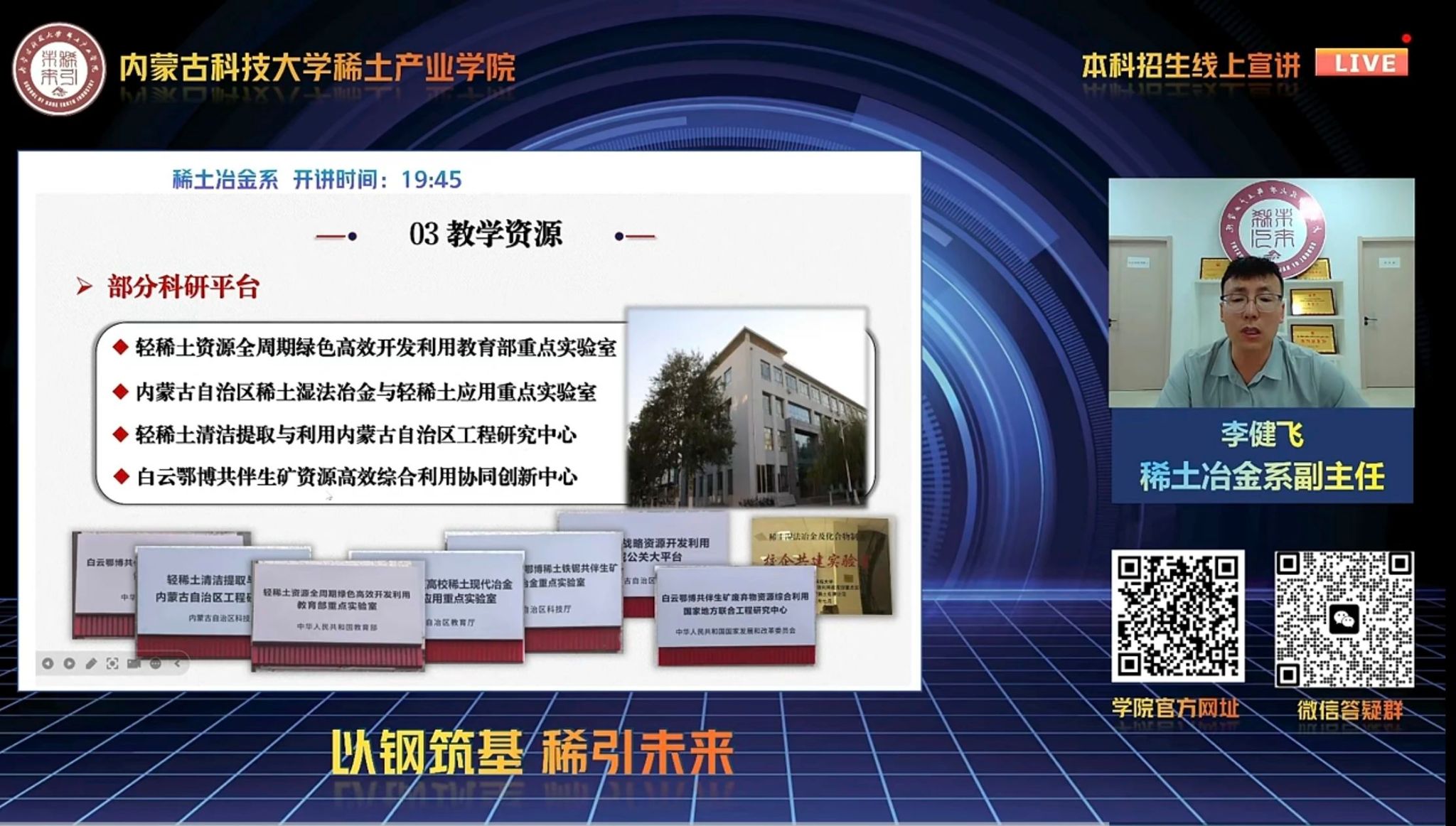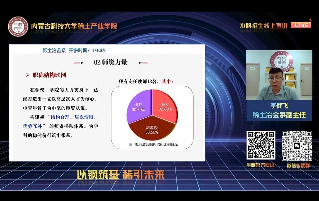 直播课堂上,老师以详实的数据与生动的案例,充分展现了公司的雄厚团队储备。既有国家杰青领衔的稀土磁性材料创新团队,也有省级教学名师主导的课程开发小组,全方位展示了“教学+科研”双轨并行的团队优势。同时,围绕稀土资源高效利用、纳米复合材料性能优化等专业问题,老师们结合产学研合作经验,分享了从理论教学到实践应用的完整培养体系,让观众深切感受到学科发展的强劲动力。