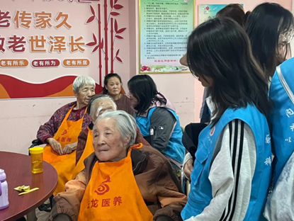 老人们被青年志愿者们的热情洋溢所感染,主动与青年志愿者们一起歌唱,其中包括《我和我的祖国》《最炫民族风》《黄河大合唱》等耳熟能详的歌曲,传递着跨越年龄的音符。此外,青年志愿者们细心地擦拭扶手,用心清扫地面,为老人们营造一个更加整洁、舒适的生活环境。