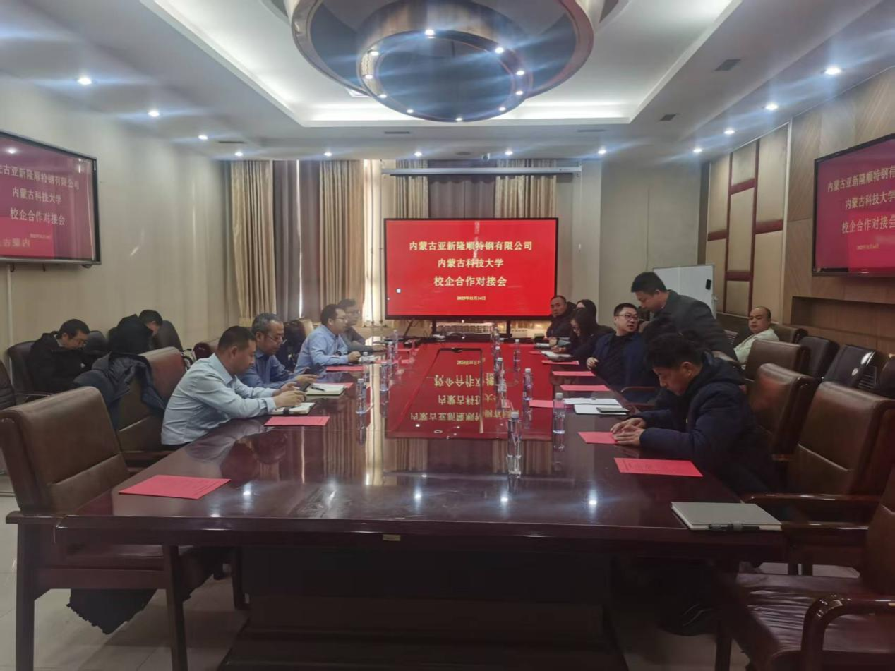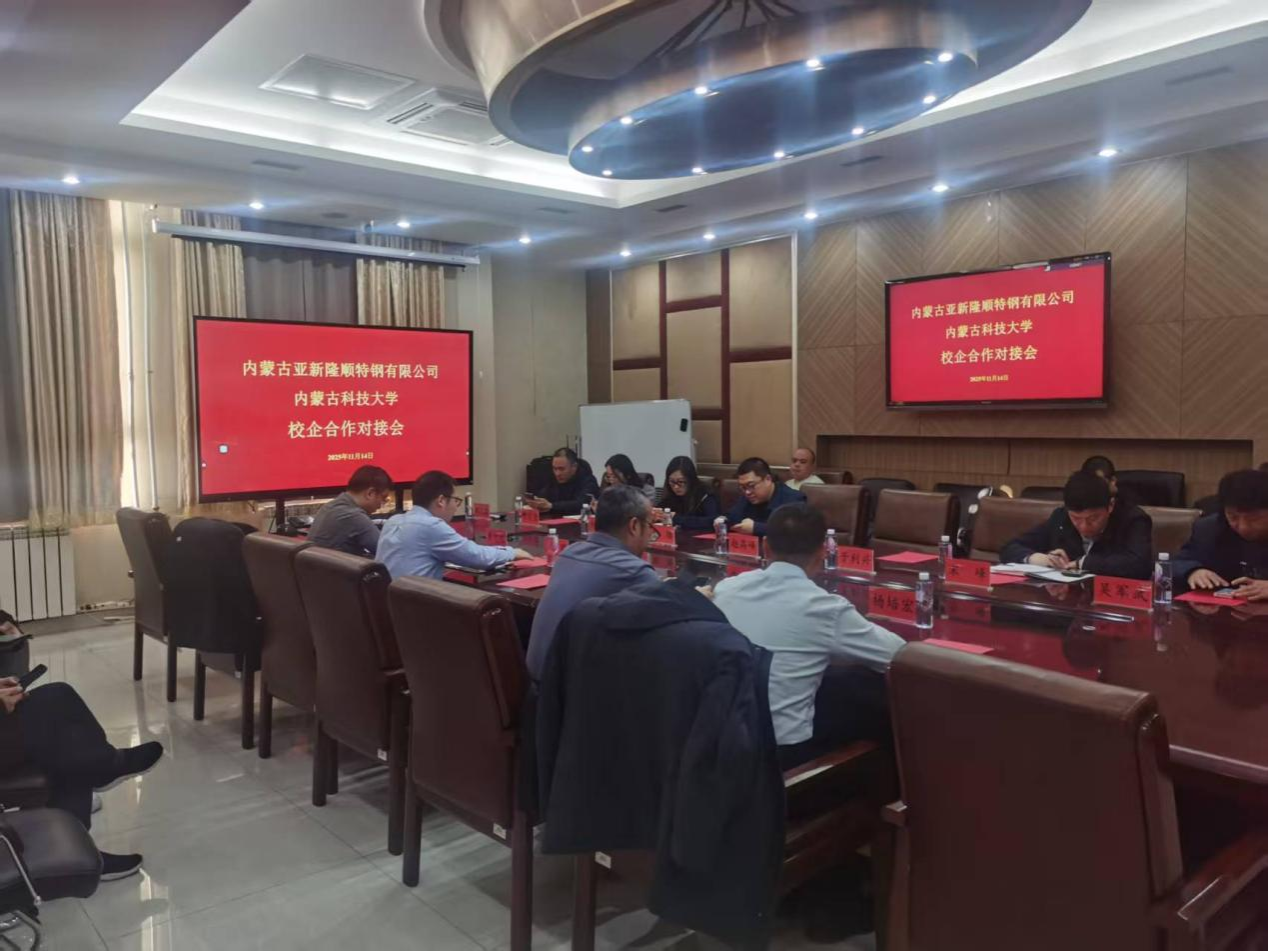 2025年11月14日,在太阳成tyc122cc集团A301会议室举行公司与内蒙古亚新隆顺特钢有限公司校企合作对接会,对深入推进产教融合、校企合作工作,进一步提升公司校企合作办学质量,聚焦校企共同育人、科研合作等,实现校企共赢。