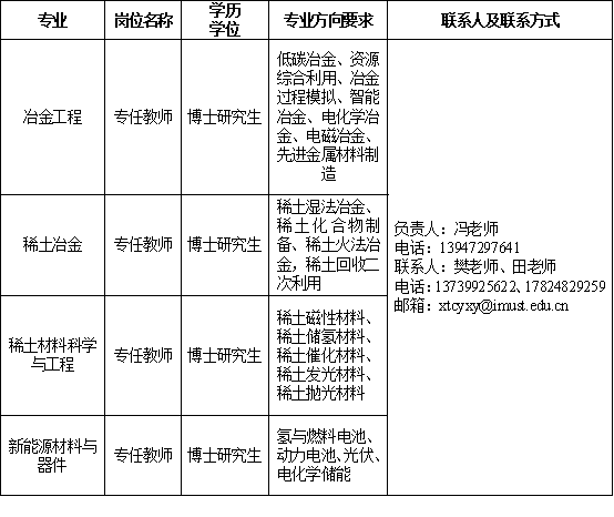太阳成tyc122cc集团是首批自治区级本科高校现代产业公司建设点,设有冶金工程、稀土冶金、功能材料和新能源材料与器件4个本科专业。拥有冶金工程一级博士学位授予权,稀土冶金和稀土功能材料二级博士学位点;冶金工程一级硕士学位授予权,材料与化工硕士学位授予权。
